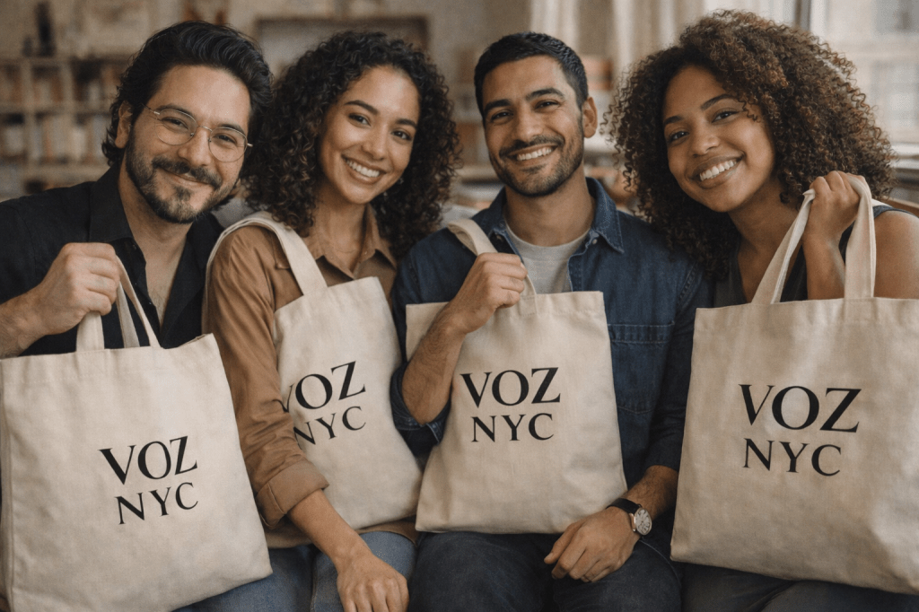 VOZ NYC has always been about people. Readers. Writers. Educators. Creatives. The VOZ NYC tote bag reflects that same spirit — not as merchandise, but as an extension of the storytelling project.